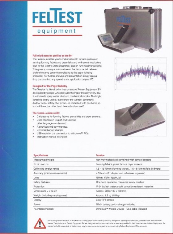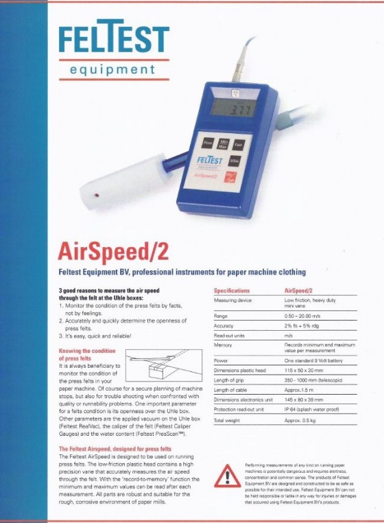 風速計,網毯安裝夾,厚度測量器,網部線上脫水效率測量器, 毛毯線上含水透水測量器,線壓感壓紙,線上長度測量器,張力測量器,閃頻燈